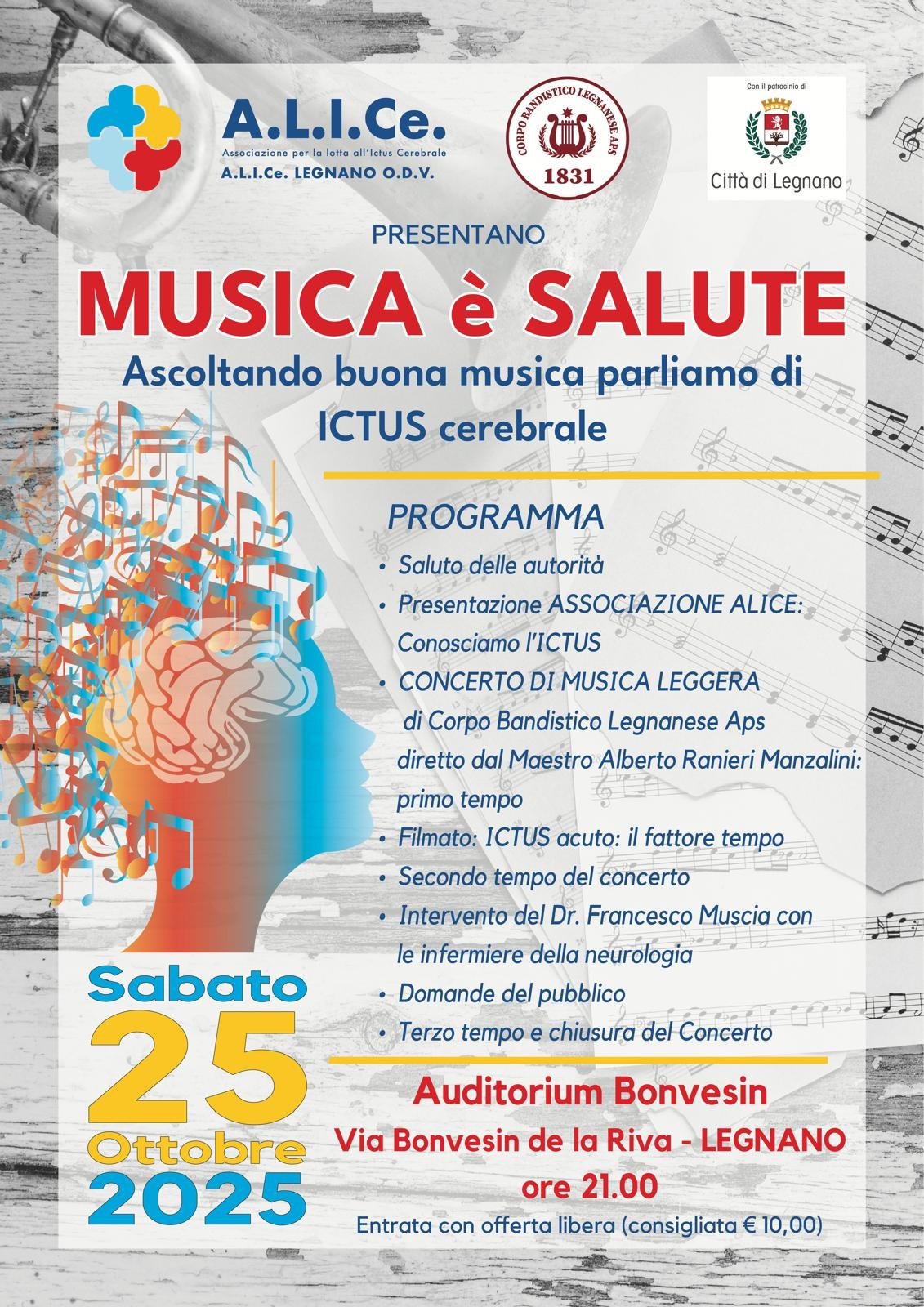 Durante la serata si alterneranno momenti musicali e interventi informativi dedicati alla prevenzione dell’ictus, con la partecipazione del Corpo Bandistico Legnanese APS, diretto dal Maestro Alberto Ranieri Manzalini, del Dr. Francesco Muscia e del personale della Neurologia.